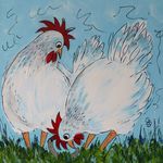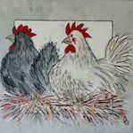 2017Kippen inclusief baklijst. Opdracht, passend bij eerder geschilderde kippen. Verkocht