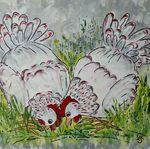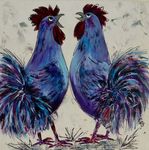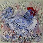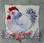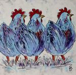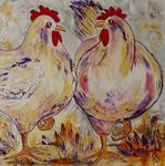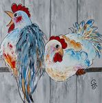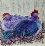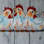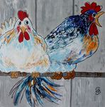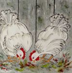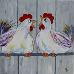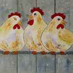 Leuke opdracht om 15 schilderijen met kippen te maken voor een bungalowpark. Alle 15 verschillend en in baklijst.