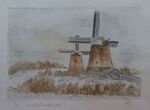 2018Winterlandschap met molens en riet in passepartout en houten lijst buitenmaat 30 x 40 cm Ets met aquarel